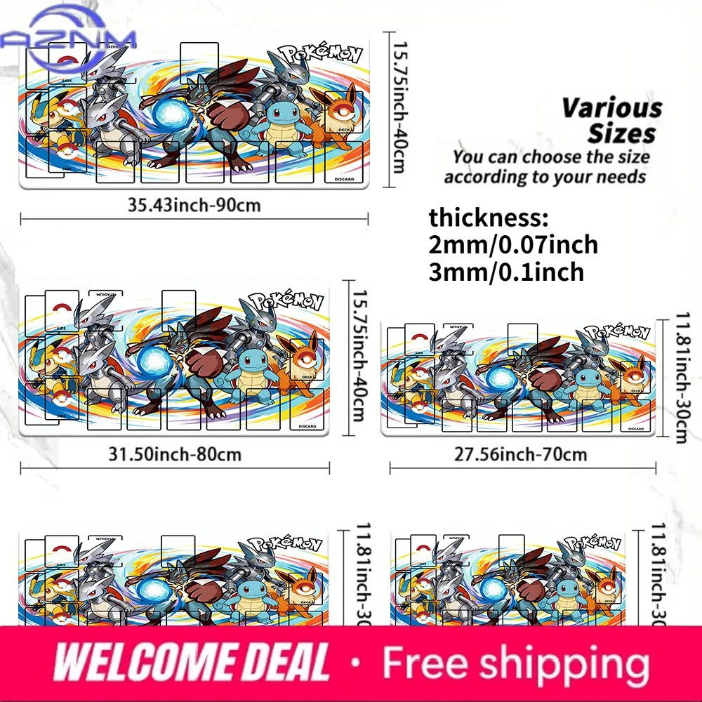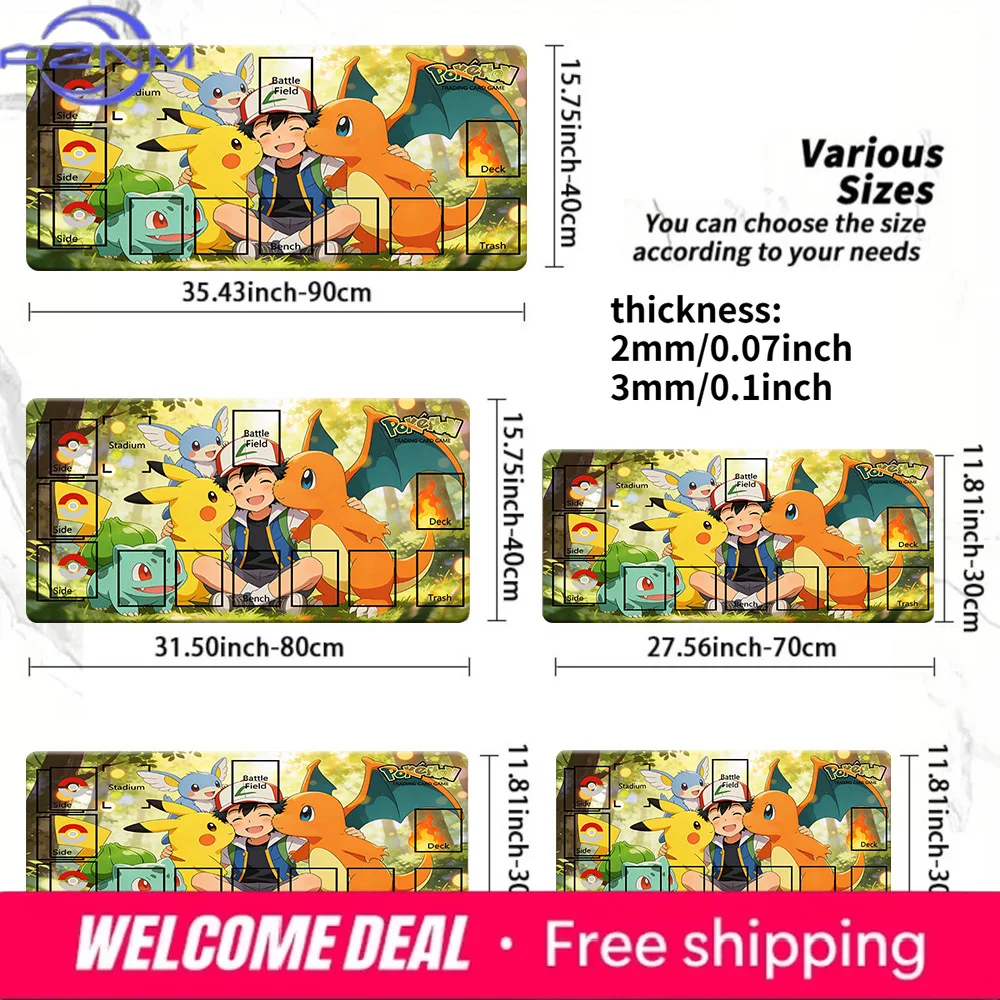 Pokemon Ash Starter Pokemon TCG Playmat, Anime Trading Card Game Mat with Zones, 2mm/3mm Thick Non-Slip Mouse Pad for CCG MTG