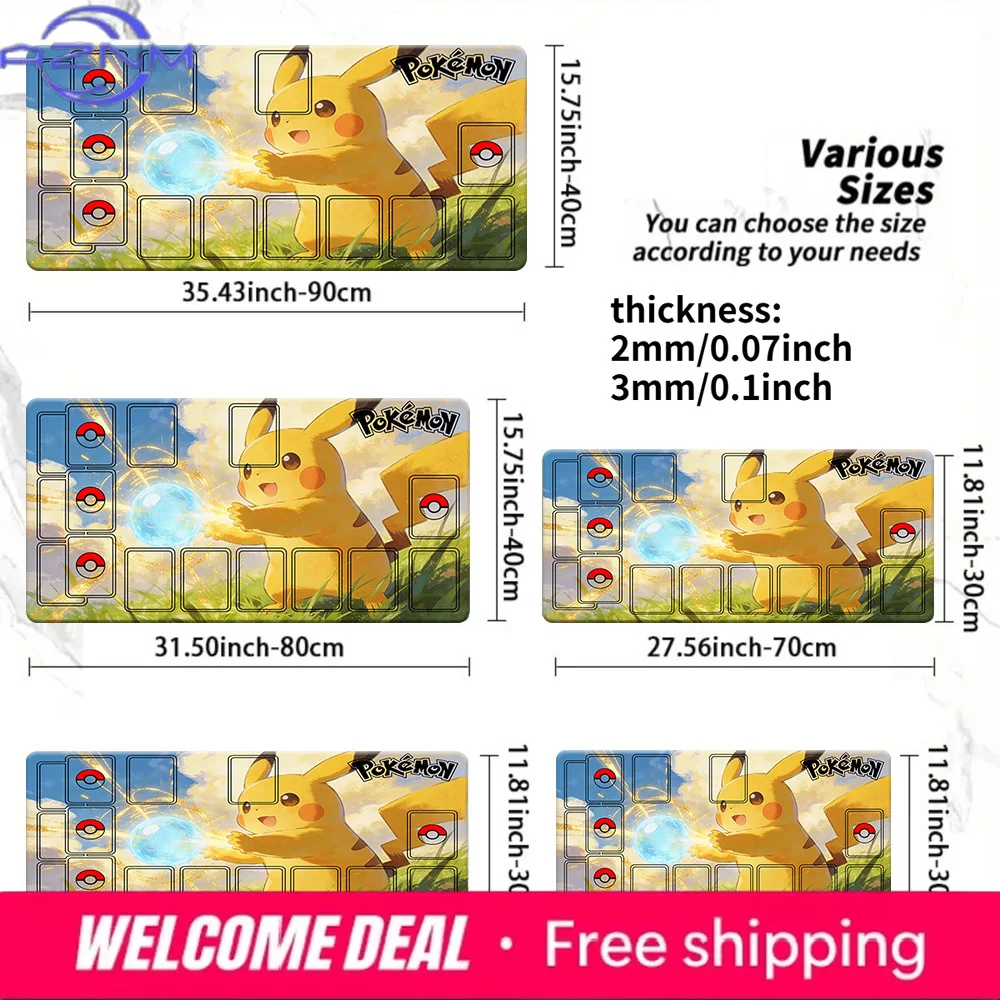 Pokemon Pikachu Grass Field TCG Playmat 2mm/3mm Non-Slip Card Game Mat Multi-Size