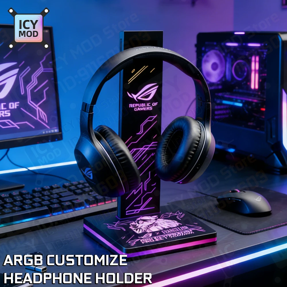 ARGB Headphone Holder PC Lighting RGB Headset Bracket DIY LOGO Earphone Stand 5V3PIN Strip AURA SNC ROG Metal Customization MOD