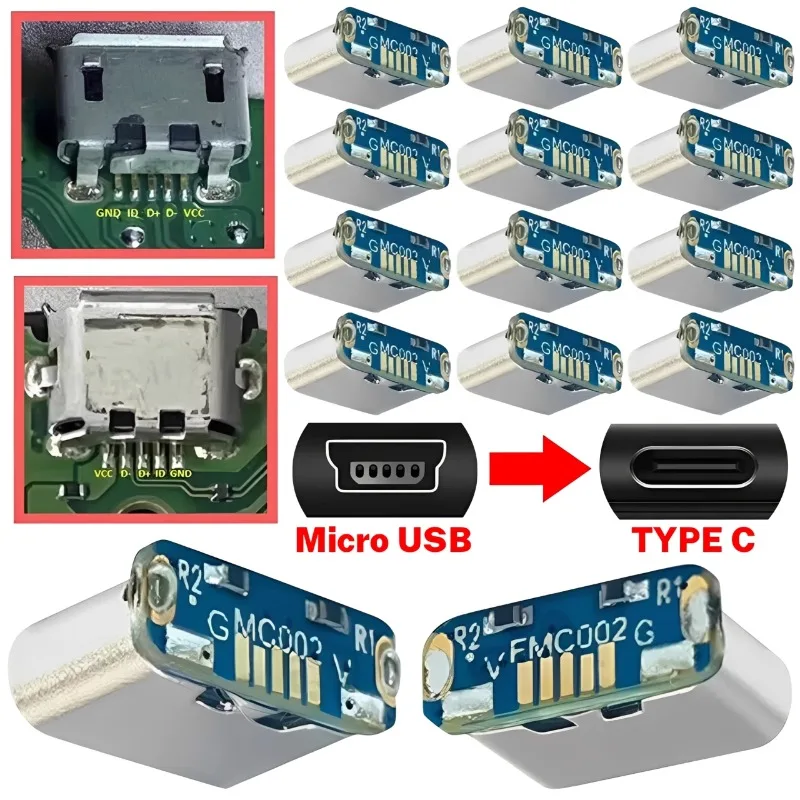 1-10Pcs Micro USB To Type C Adapter Board 5Pin SMD SMT Type-C Socket Charging Port Jack For PCB Soldering DIY Repair Adapter