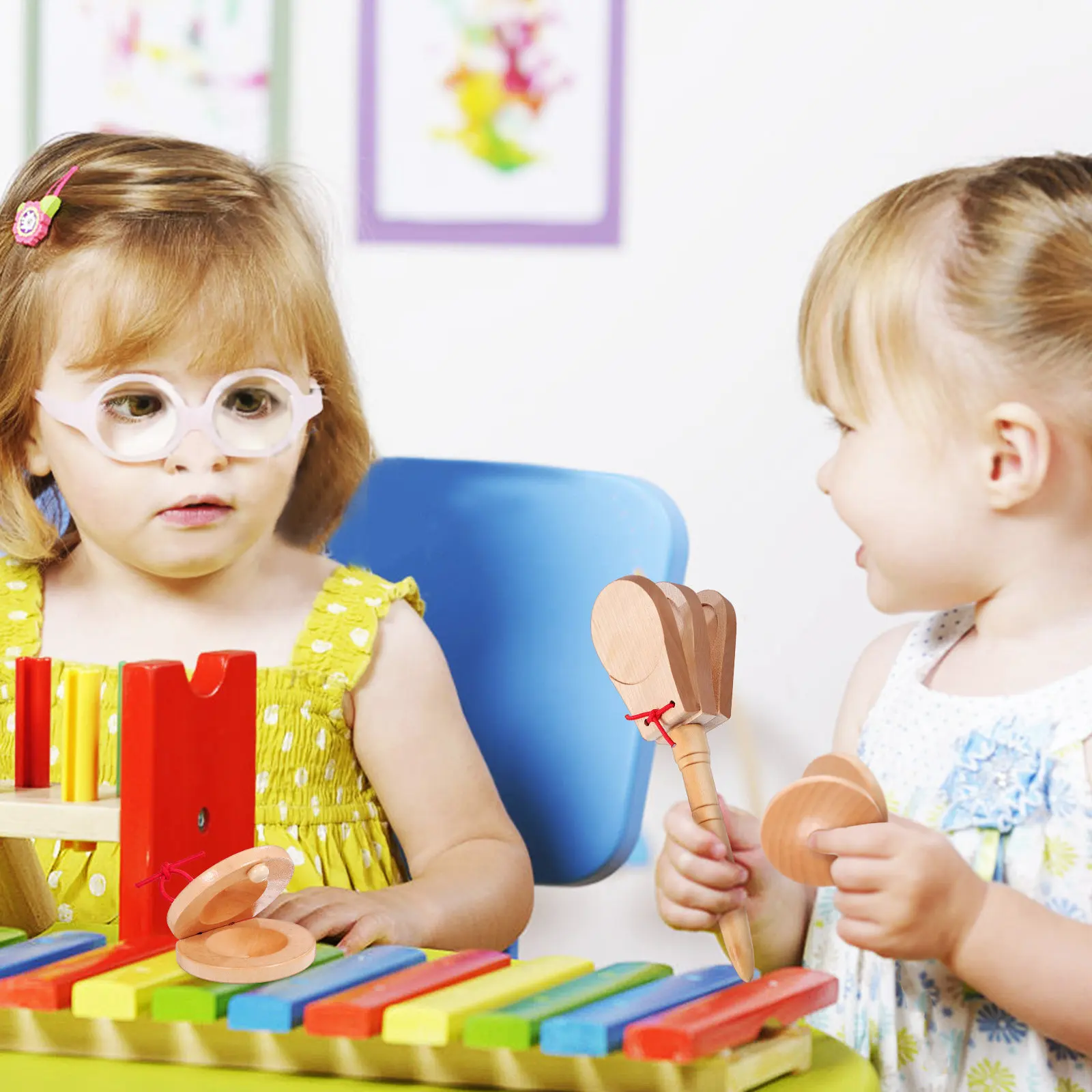 4Pcs Rhythm Clappers Percussion Instruments for Children Musical Talent Development Wood Castanets Educational Playthings