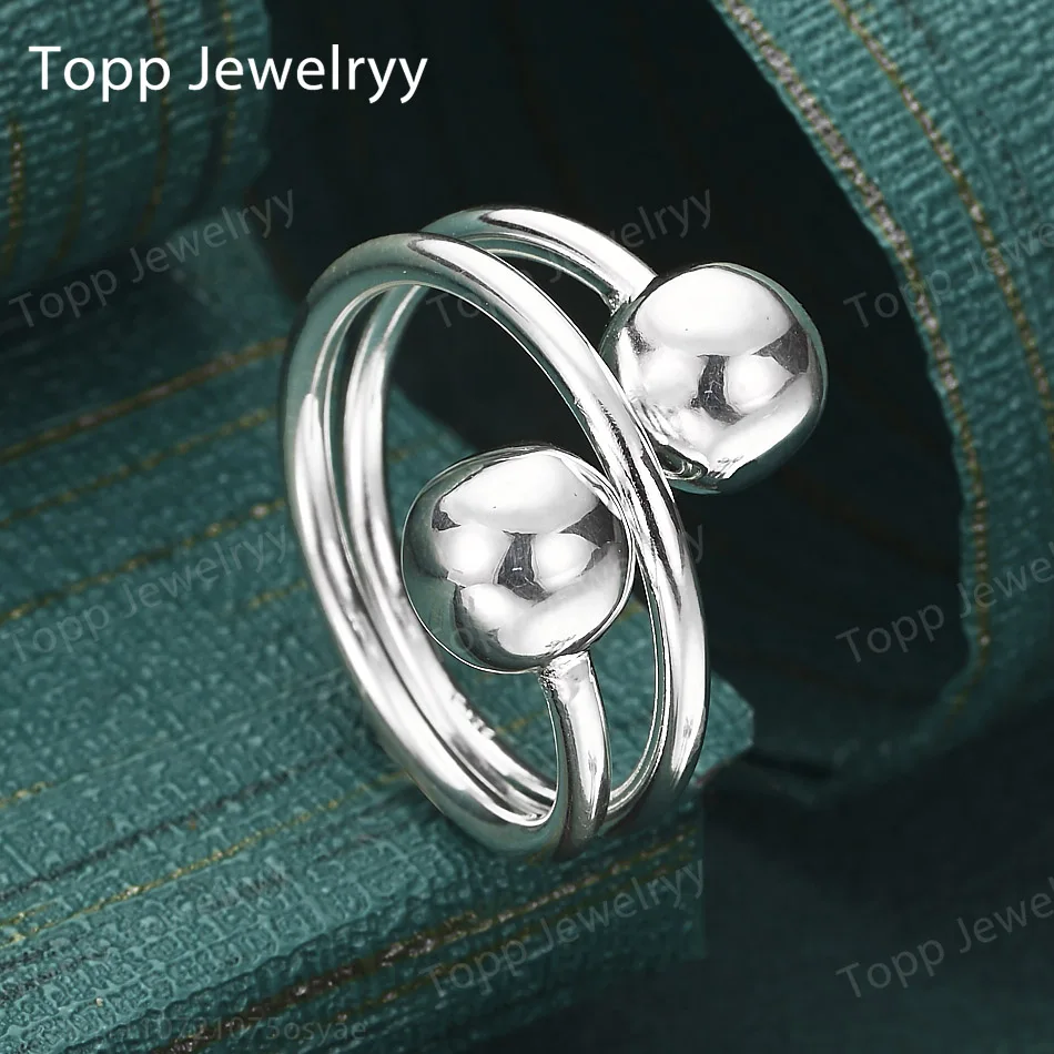 925 Sterling Silver Exquisite Adjustable Double Beads Ring Fashion Women Charm Party Christmas Gift Jewelry
