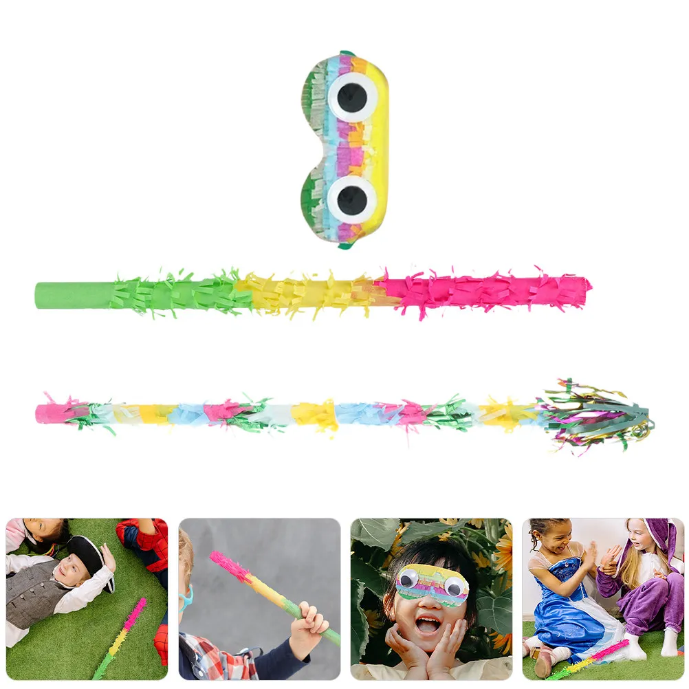 1Set Pinata Decoration Colorful Sturdy Lightweight Stick and Blindfold for Birthday Party Fiesta Celebration Game Fun