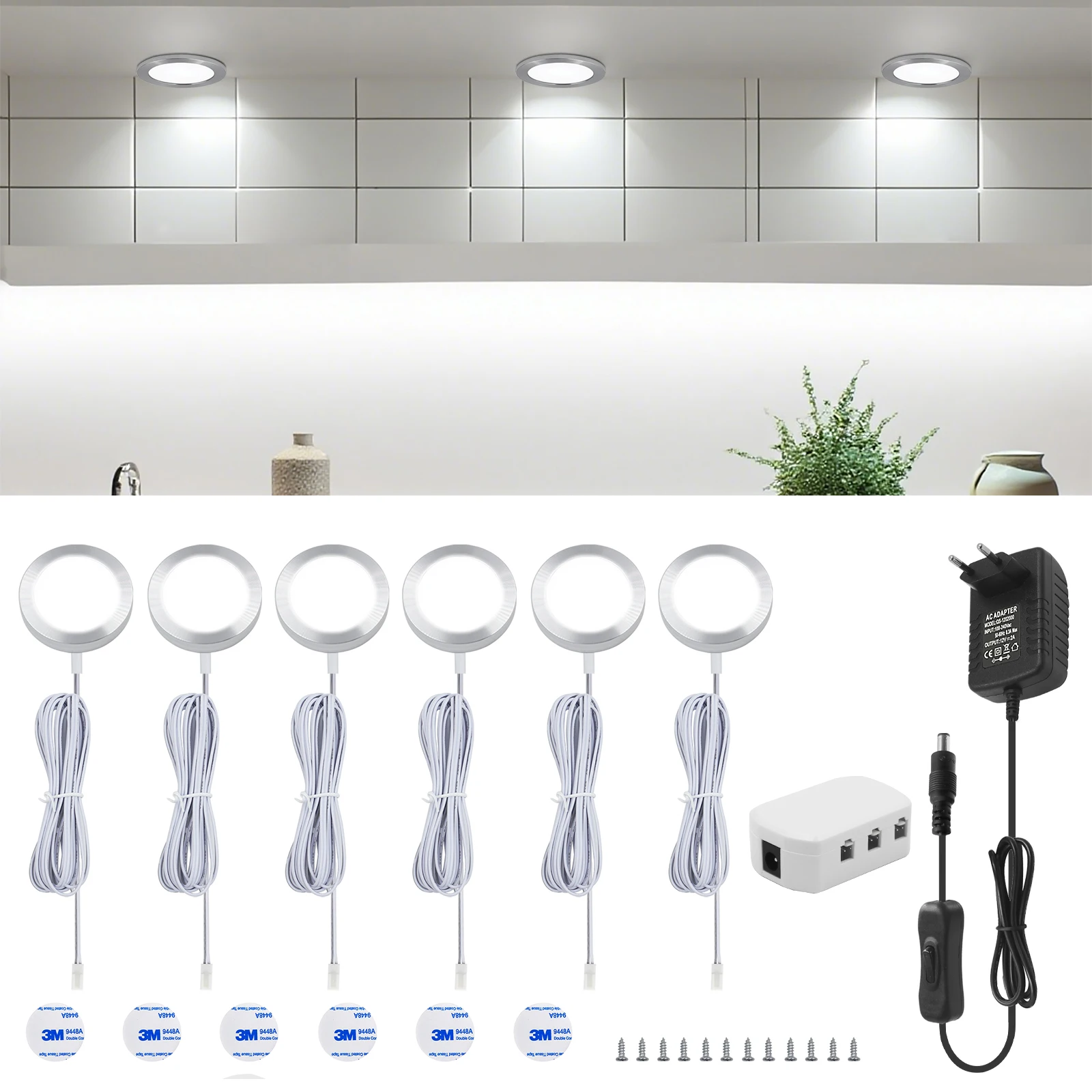 12V LED Under Cabinet Light Switch Power Kit Collection Ultra Thin Ceiling Lights Round Spot Lamp for Kitchen Lights Tape Warm