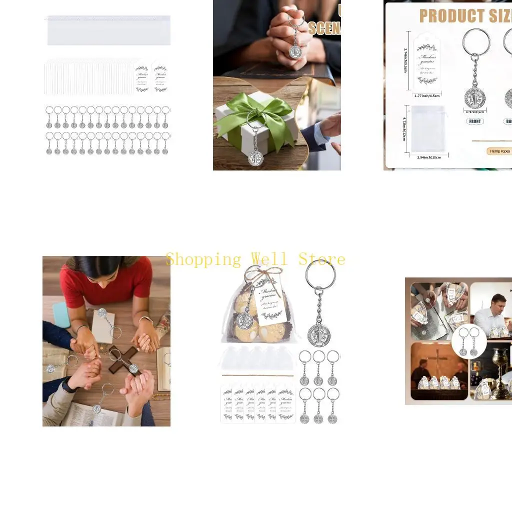 KX4B 50PCS Religious Metal Keychain Set with Organza Drawstring Bag For Wedding Birthday Christmas Gifts Bag Fillers