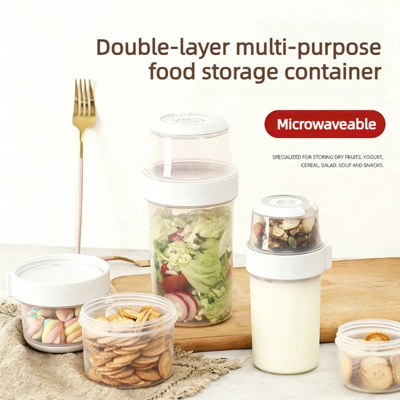 Double layer sealed fresh-keeping portable packaging box, outdoor fruit salad bento box, yogurt oat cup sealed storage jar
