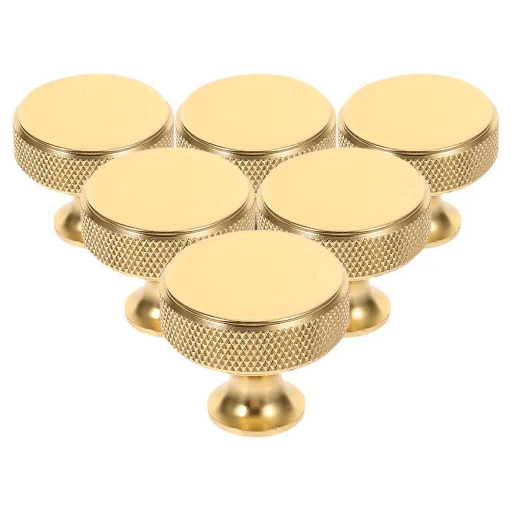 6Pcs Gold Tone Minimalist Round Cabinet Knobs Single Hole Pull Handles for Wardrobe Dresser Drawer Cupboard Modern Metal