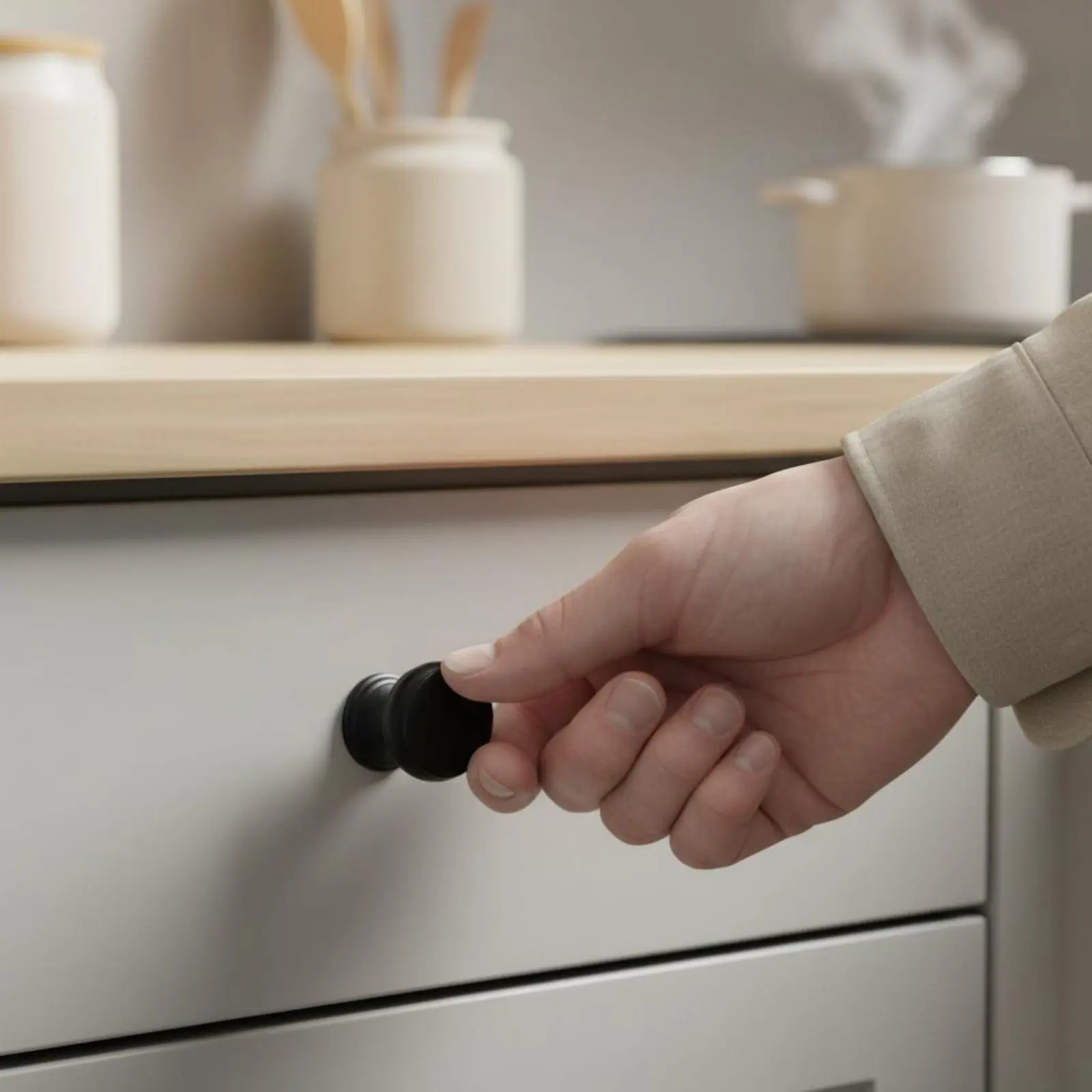 Single Hole Cabinet Handle Long-Lasting Single Hole Drawer Handle Round Cabinet Knob Rust Resistant Black Metal Dresser Knob