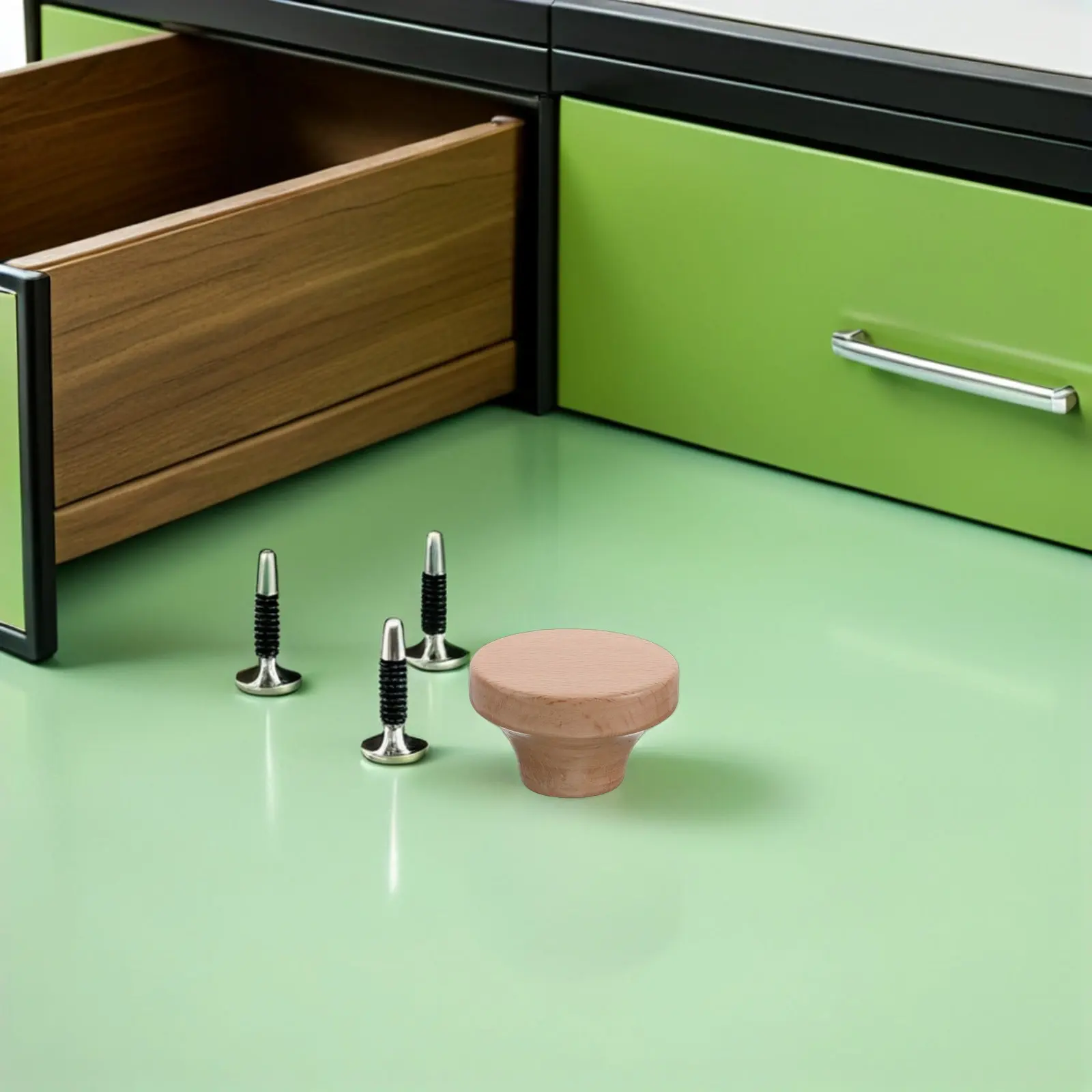 4Pcs Wooden Cabinet Handles Solid Wood Round Drawer Pulls Rustic Single Hole Knob for Bedroom Kitchen Dresser Wardrobe Brown