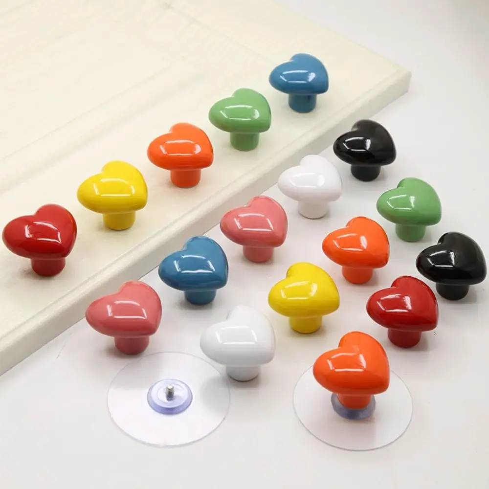 Single Hole Heart Shaped Door Handles Heart-shaped Colored Door Pull Handles Ceramic No- punching Ceramic Cabinet Knob Wardrobe
