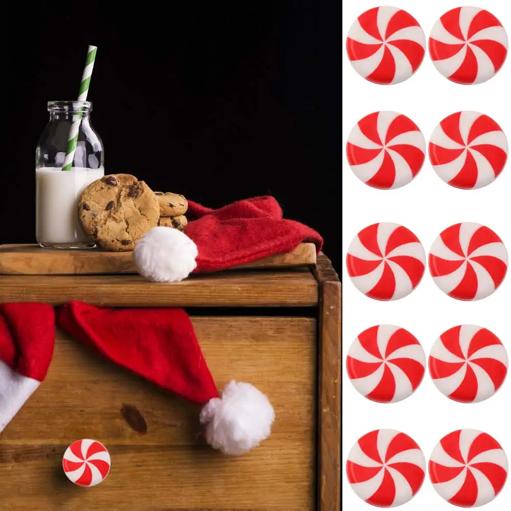 10pcs Peppermint Candy Christmas Knob Button Cover Silicone MIini Xmas Tree Hanging Cover Round Red Drawer Knobs Cover