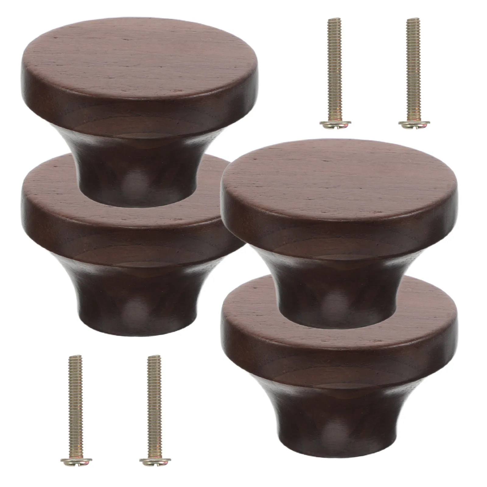 4Pcs Wooden Round Drawer Pulls Solid Wood Cabinet Knobs Rustic Single Hole Handles Decorative Replacement Hardware Wardrobe