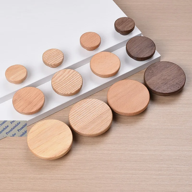 2Pcs Natrual Solid Wood Round Knob Handle For Door Furniture Cupboard Cabinet Walnut Beech Ash Rubberwood