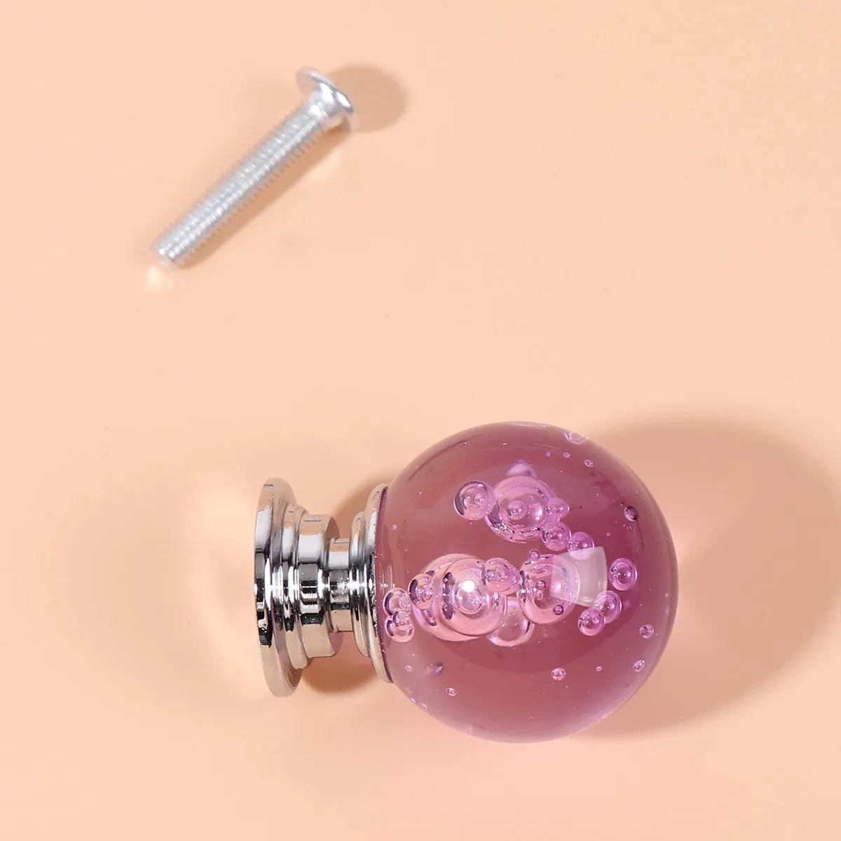4Set Furniture Handle Bubble Ball Cabinet Drawer Knob Silver Base Single Hole Stylish Door Pull Knob for Drawer Home Office