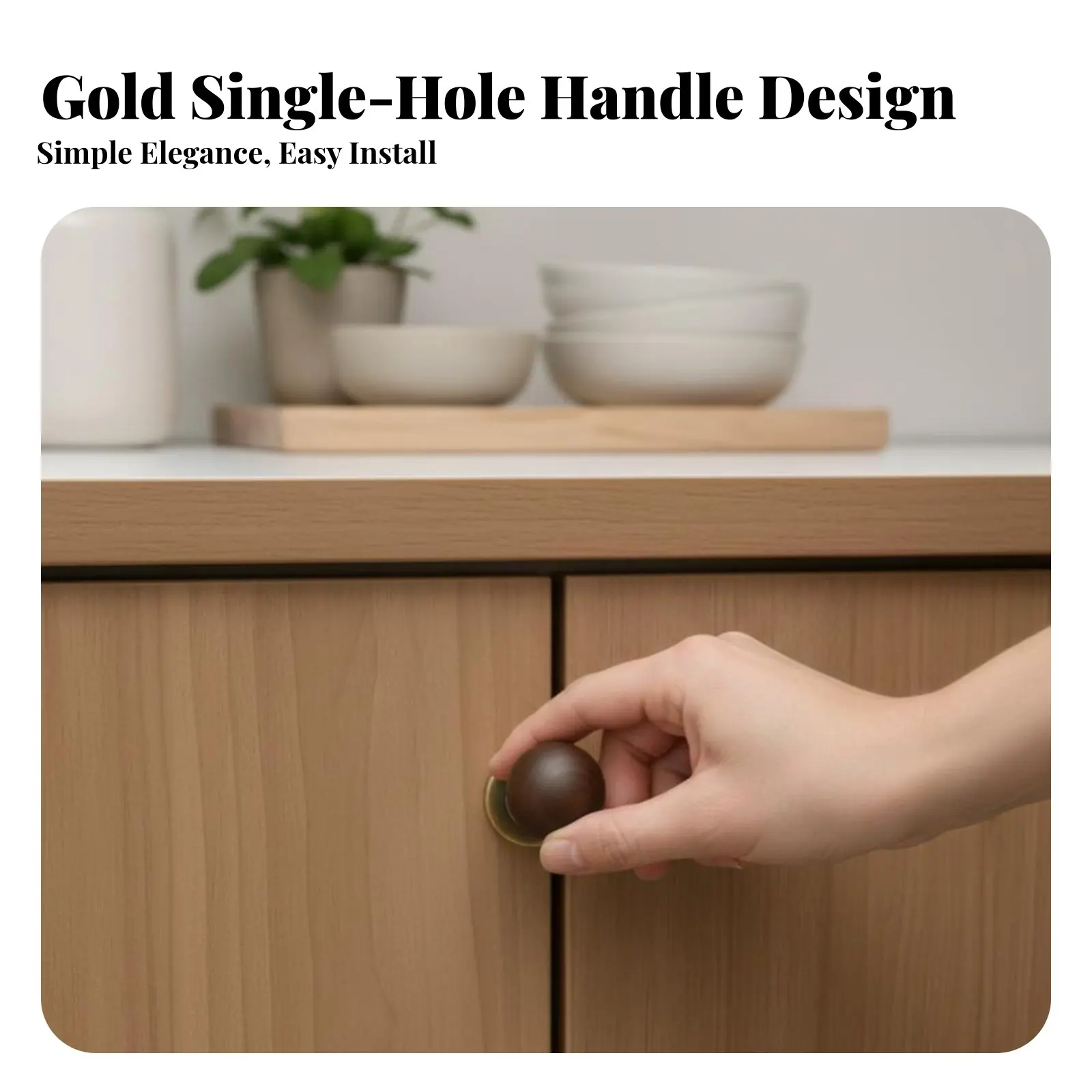Nordic Walnut Cabinet Handle, Zinc Alloy Gold Pull, Vintage Drawer Knob for Wardrobe, Shoe Cabinet, Dresser