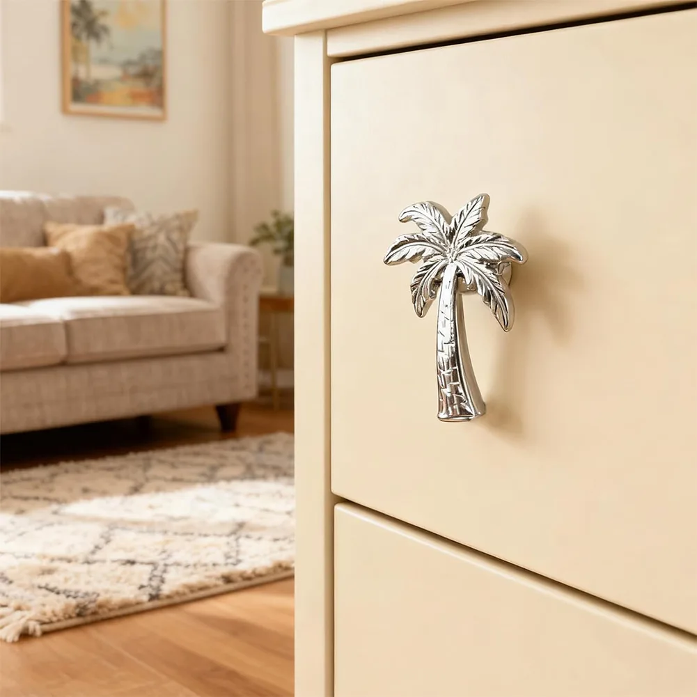 6pcs Coconut Tree Cabinet Knobs Zinc Alloy Single Hole Small Drawer Pulls Silver Kitchen Cabinet Handles Furniture Hardware