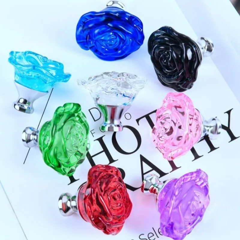 4 Pcs 50mm Diameter Glass Knobs and Handles Rose Shape Crystal Cabinet Handles Flower Decorative Door Pull with Screws