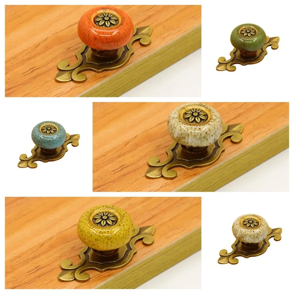 Fashion Single Hole Ceramic Knob Ethnic Style Ceramic Flower Pull Handle Antique Bronze Drawer Knobs Cabinet