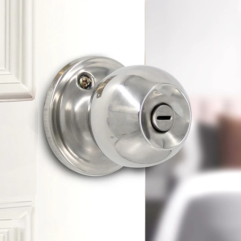 Metal RotationStainless Steel Round Keyless Bathroom Door Handle With Lock And Keys Knobs Room Accessories For Bedrooms Knobset