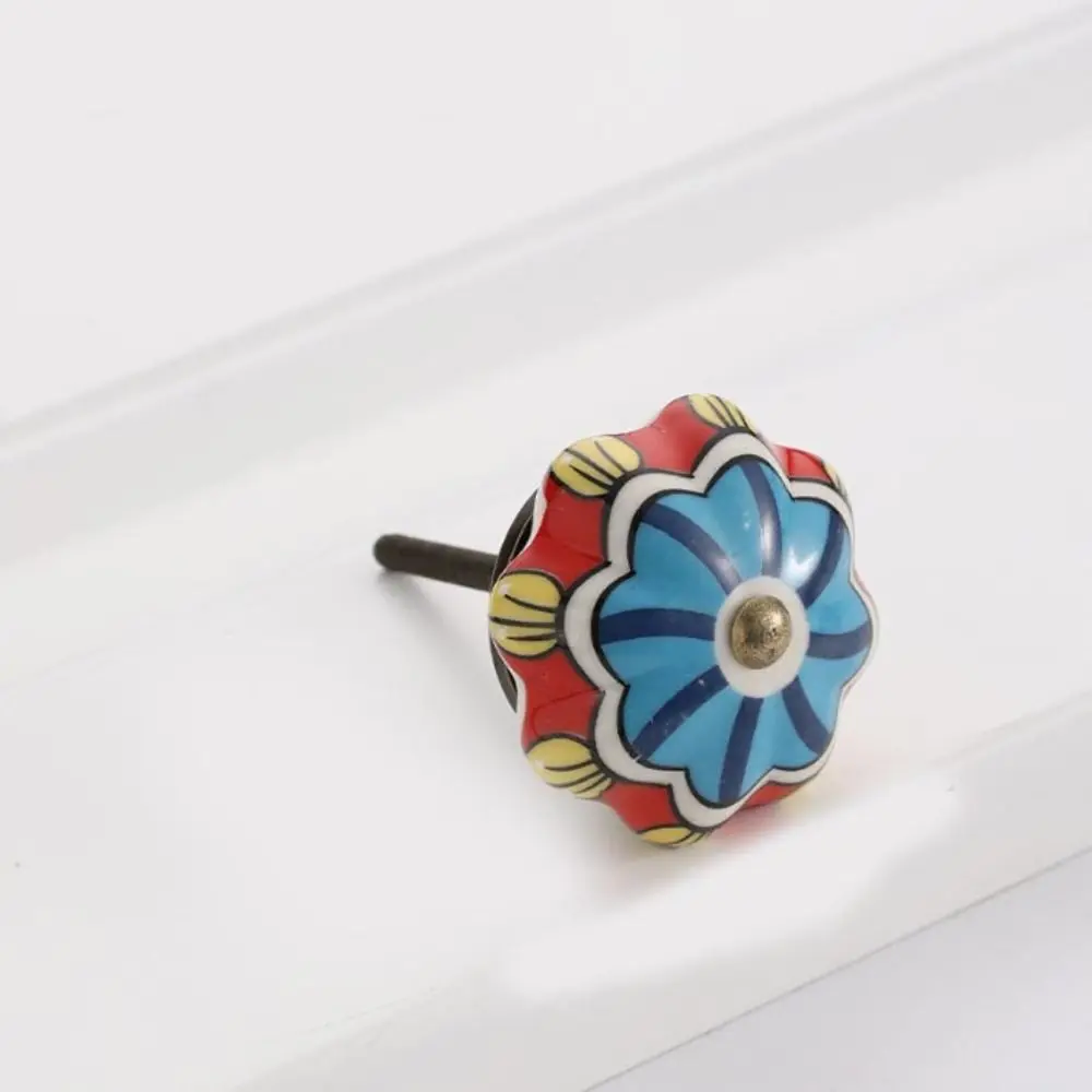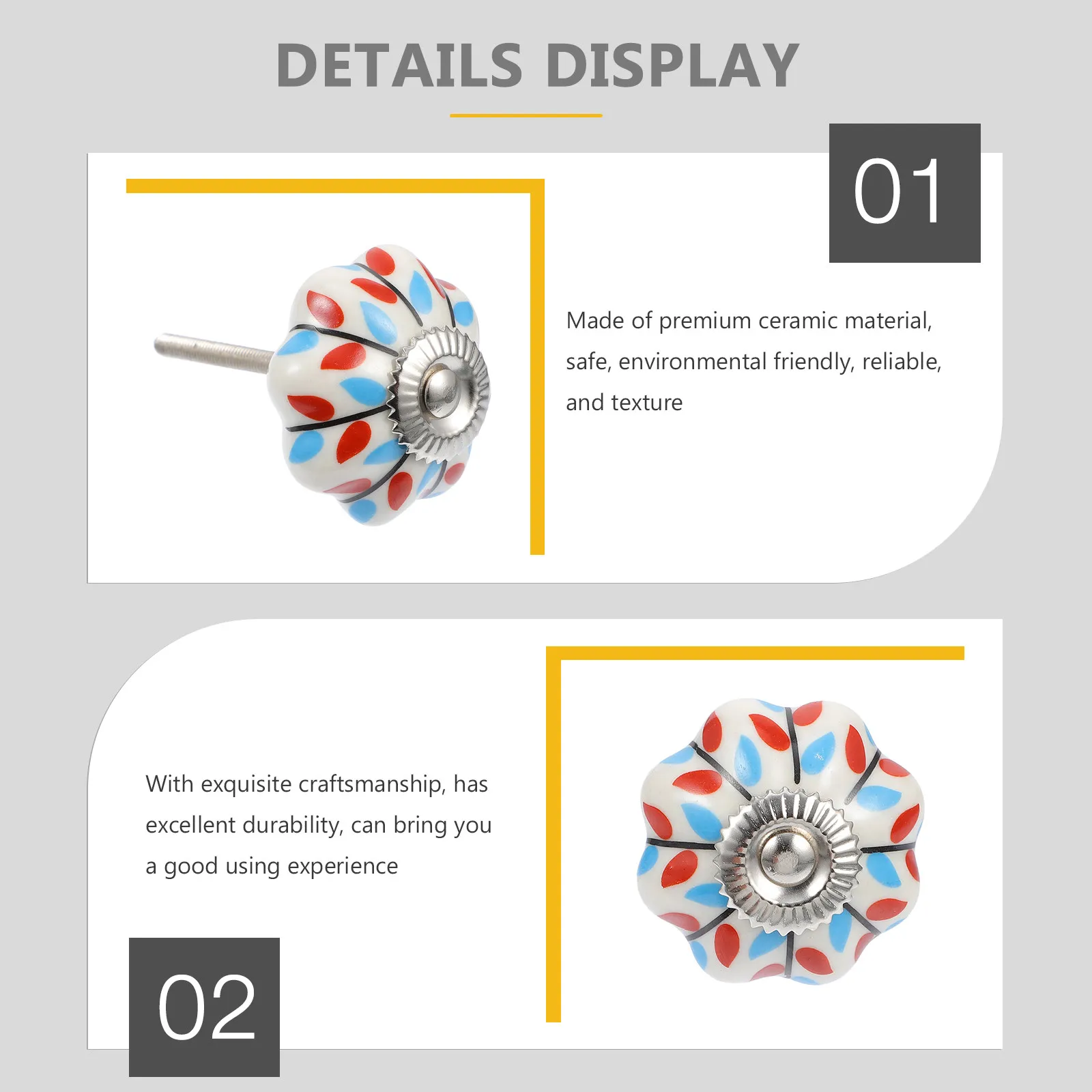 3Pcs Ceramic Handle Modern Simple Printed Flower-Shape Cabinet Drawer Knob Smooth Surface Wardrobe Door Handle