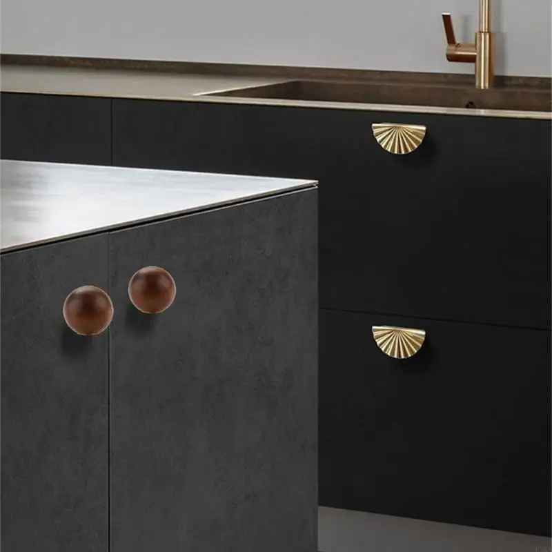 2pcs Natural Cabinet Handle with Brass Finish Decorative Pull for Drawers