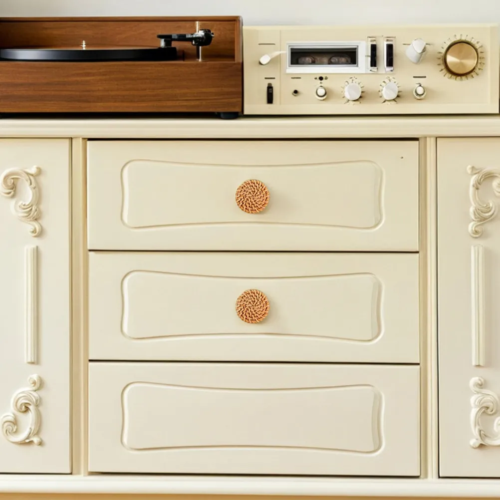 6Pcs Round Woven Wood Knobs Boho Farmhouse Dresser Drawer Cabinet Pulls Rattan Decorative Furniture Handles Stylish Rustic