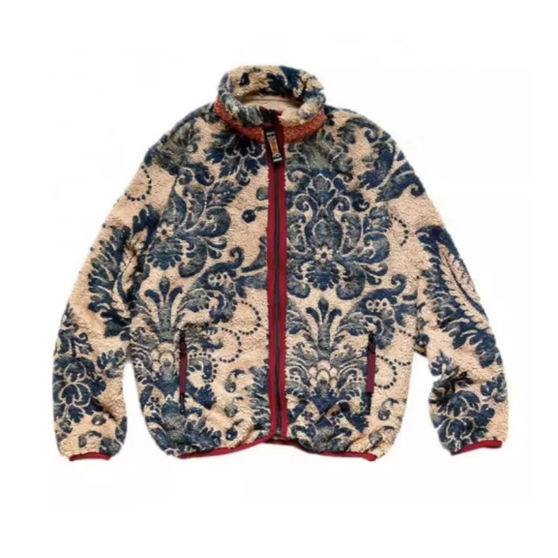 Japanese-style Autumn Winter Ethnic Style Fleece Lamb Wool Jacket Men's and Women's Retro Casual Zipper Warm Printed Coat