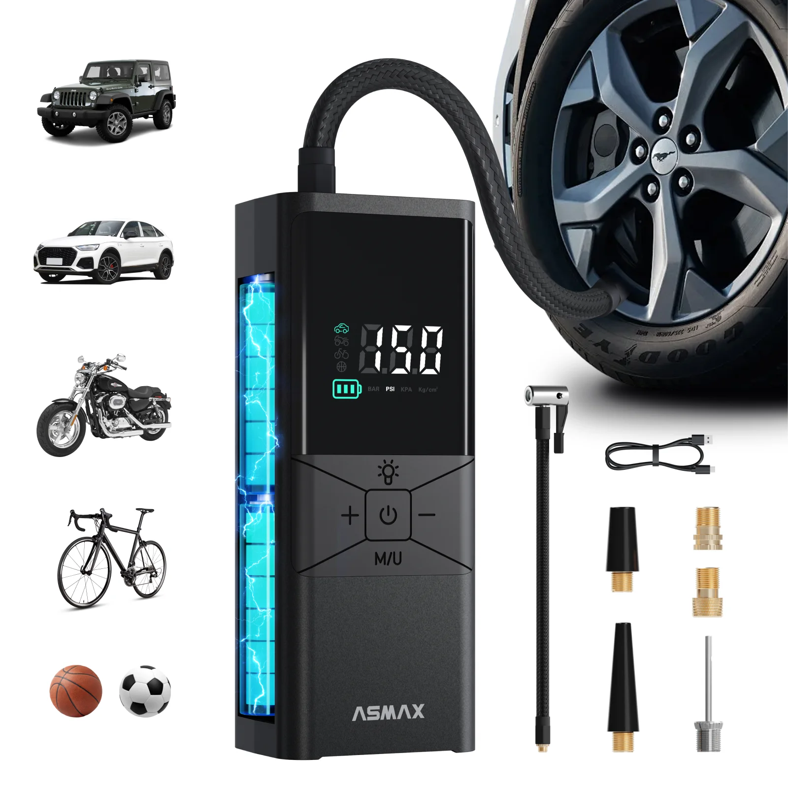ASMAX T40 150PSI Tire Inflator Pump 6000mAh Rechargeable Portable Air Compressor LED Display Instant Pressure Reading