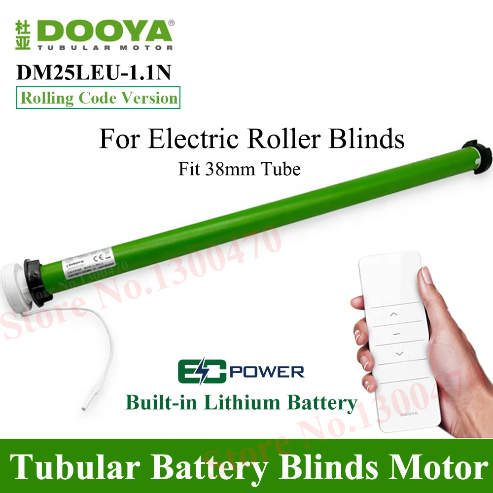 DOOYA DM25LEU Tubular Motor built-in li battery Motor for Rolling Blinds, RF433 Emitter Control,for 38mm Tube,Brackets+Tail Plug