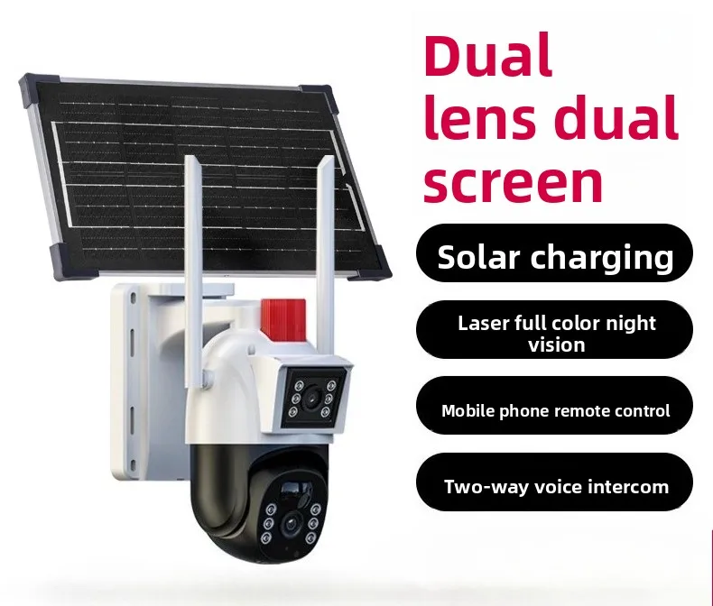 Outdoor Solar Dual Lens Camera HD Night Vision No Power No Network Remote