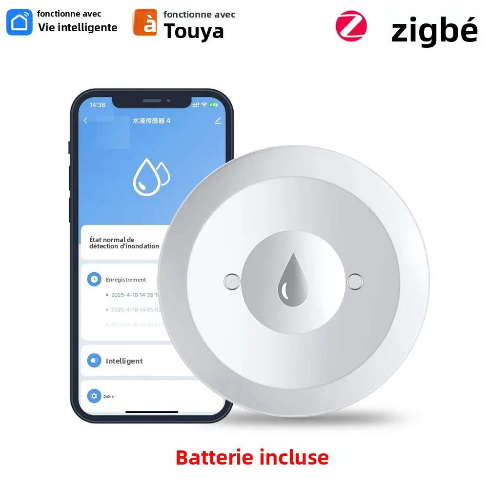 Tuya Zigbee2mqtt Water Immersion Sensor Smart Life Leakage Sensor Water Linkage Alarm App Remote Monitoring Water Leak Detector