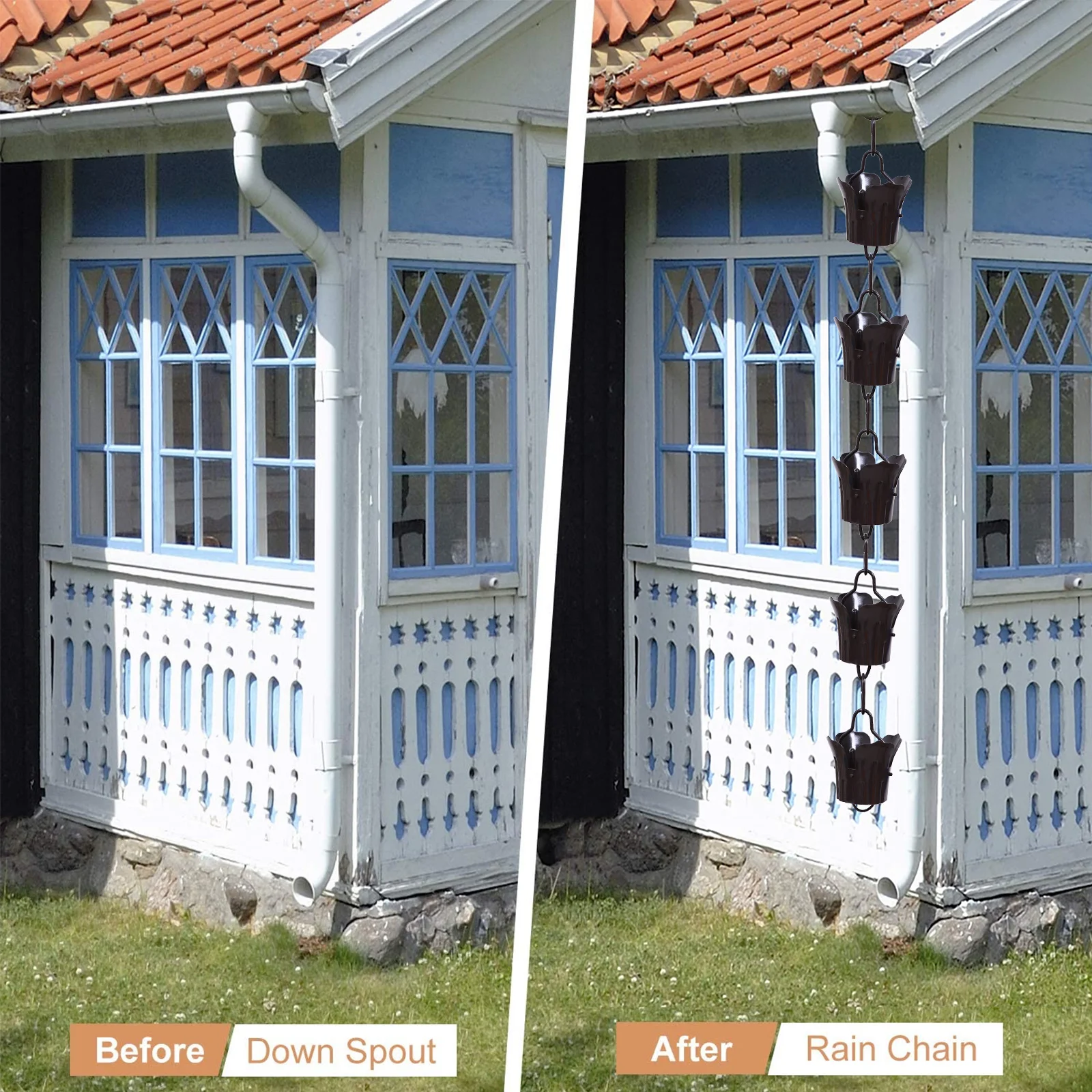 Rain Chain for Gutter Roof Downspout Decorative Metal Rain Catcher Diverter for Windowsill Garden Patio Courtyard