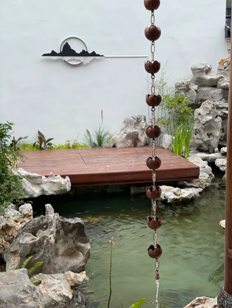 1pc Creative Metal Rain Chain Water Lily Rain Chain Charming Wind Chime For Outdoor Garden Decoration Unique Wind Chime Art