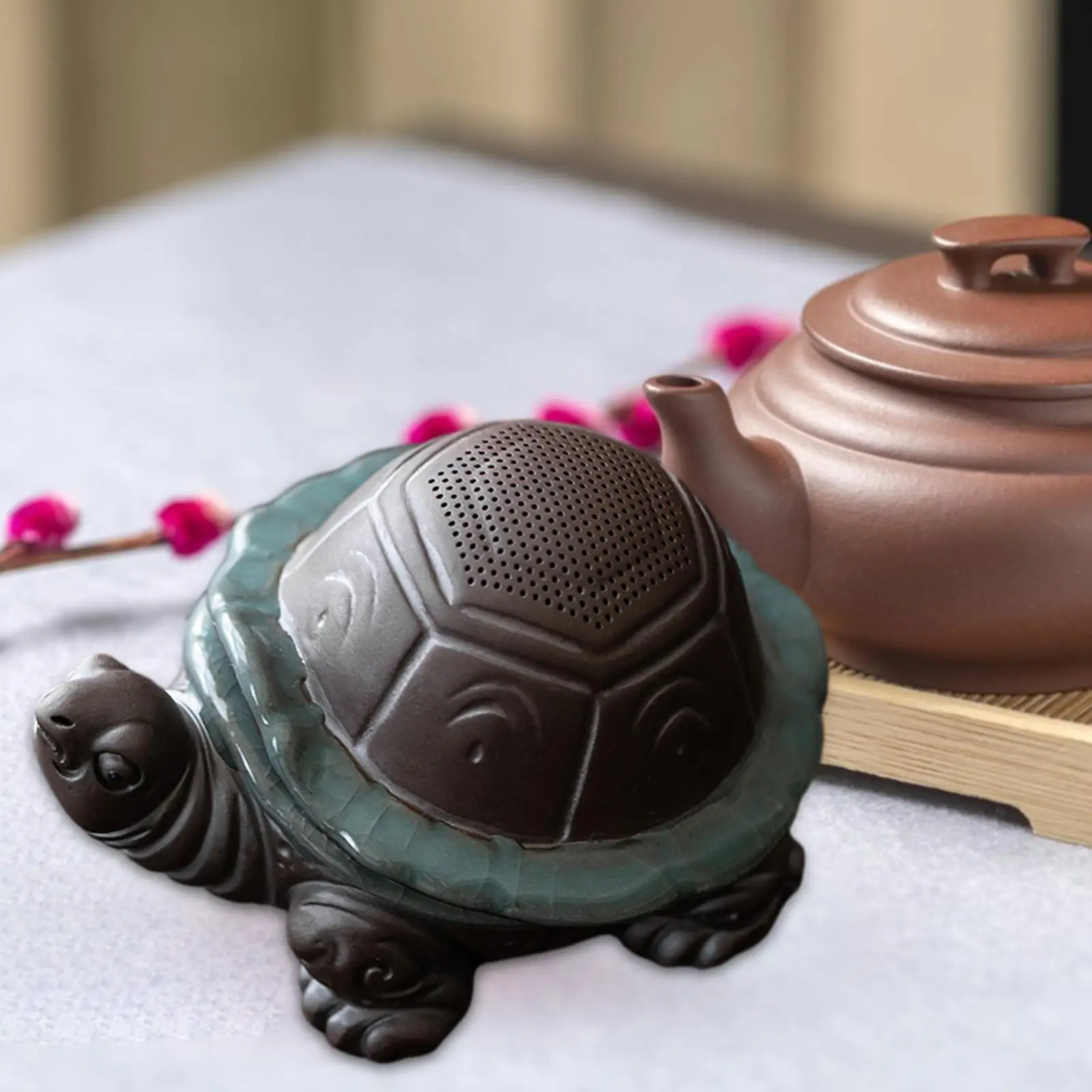 Tea Pet with Tea Filter Shelf Table Tea Room Clay Decoration Detachable Dining Room Tea Infuser Mini Sculpture Turtle Statue
