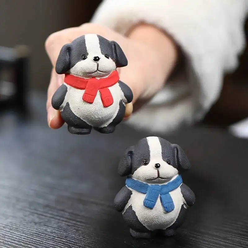 Yixing Zisha Puppy Tea Pet Premium Lucky Border Collie Zodiac Dog Prosperous Tea Table Ornament Tea Set Accessories Can Be