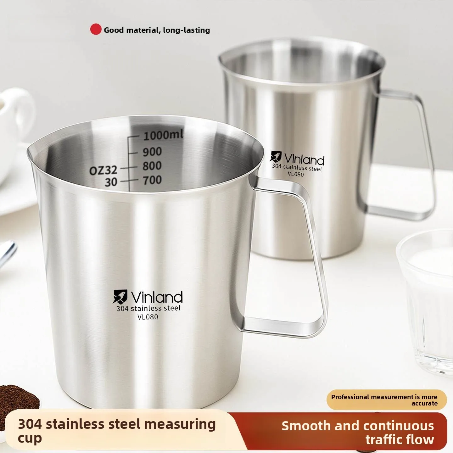 Thickened 304 Stainless Steel Milk Measurement Cup Large Capacity Baking Kitchen Utensil Food Grade Cooking Cup with Scale