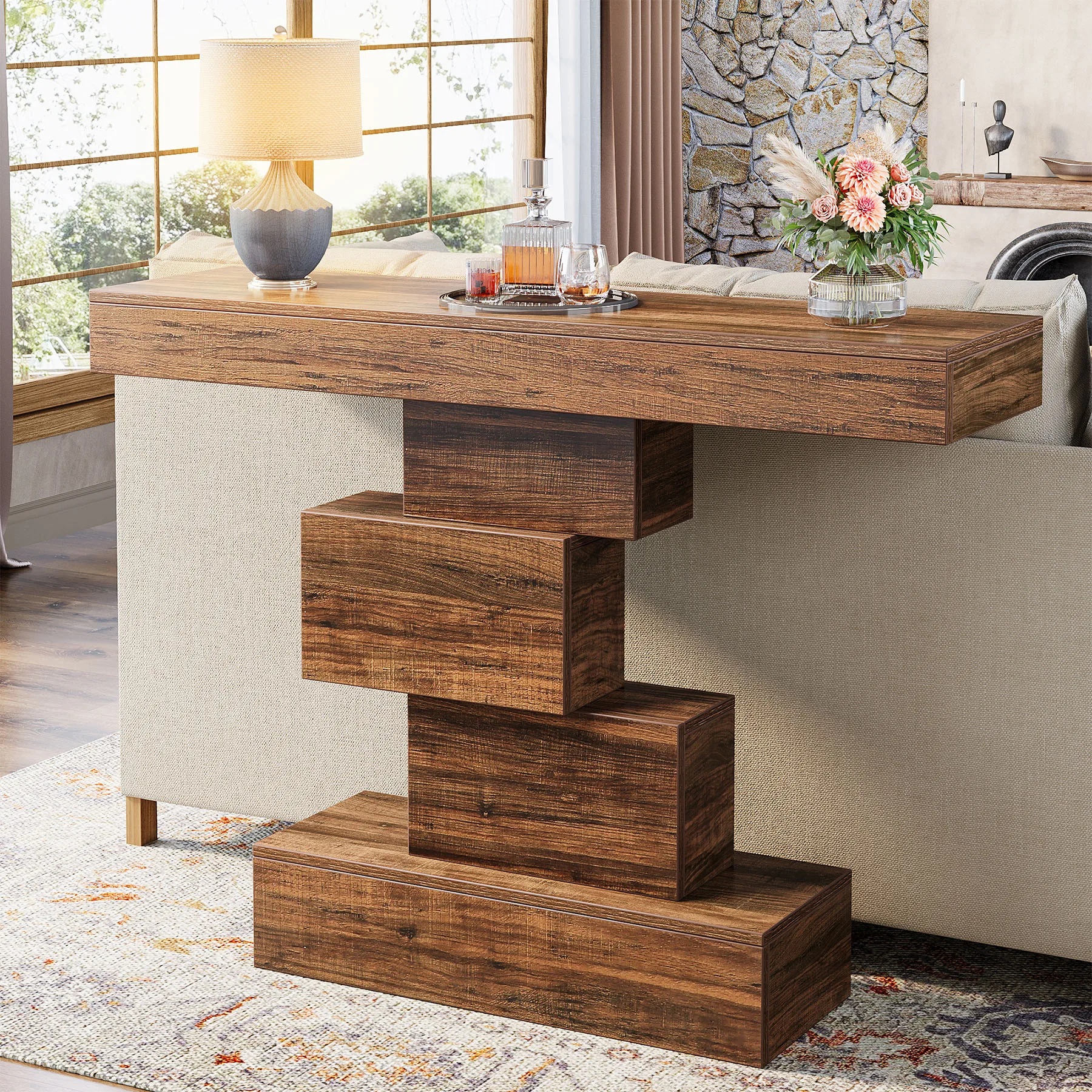 Console Table, 4-Tier Entryway Table, 41.3-Inch Industrial Sofa Table for Living Room, Foyer Hallway Table for Entrance