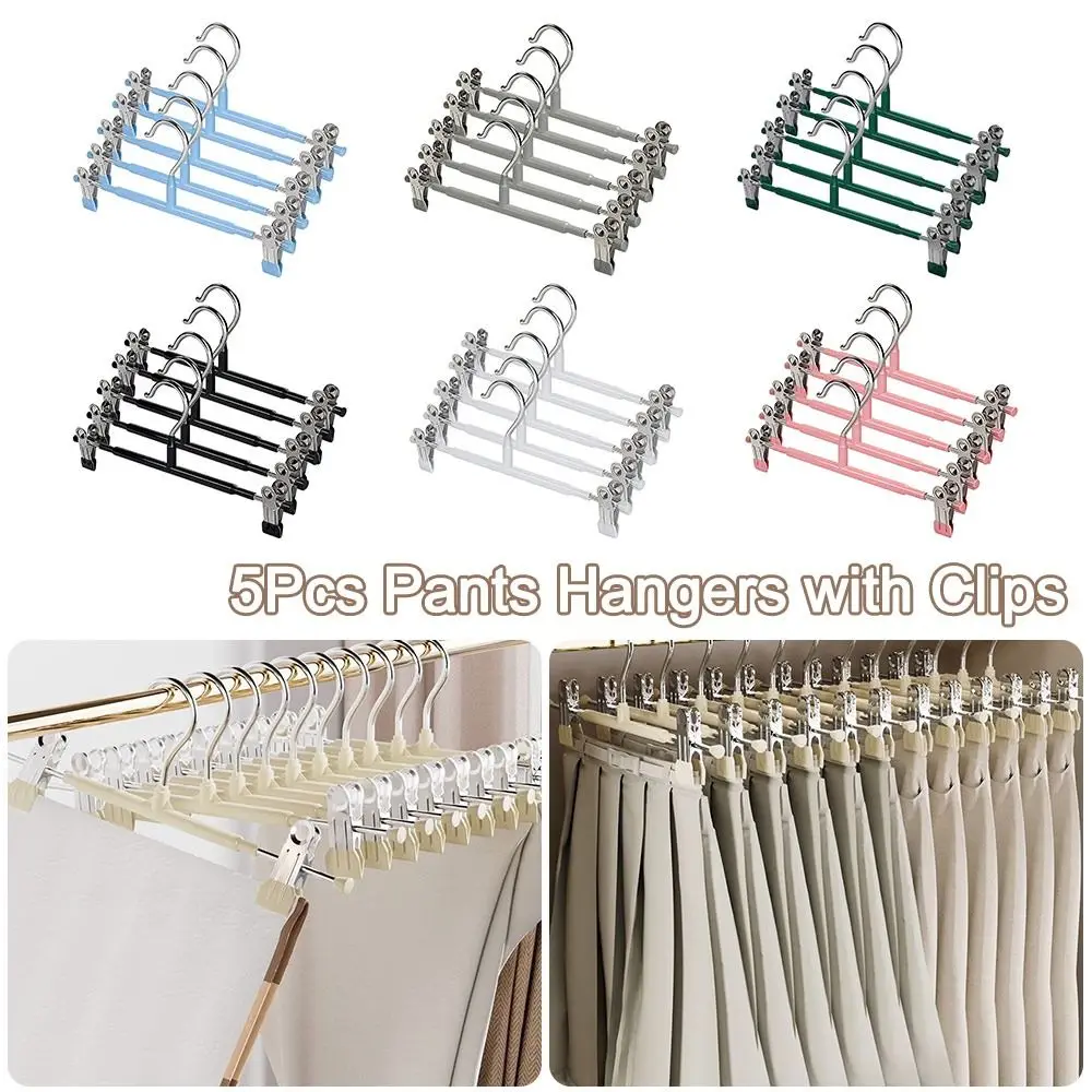 Durable Adjustable Pants Hangers with Clips Non-Slip No Trace Skirt Hangers Windproof Trousers Hanger