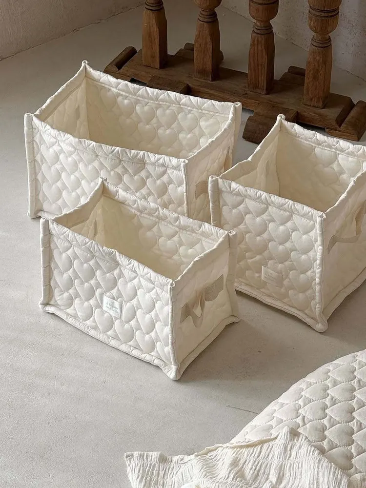 Adorable Ins Heart Quilted Storage Basket Baby Toys And Necities Storage Children's Room Organization Cotton Fabric Baskets