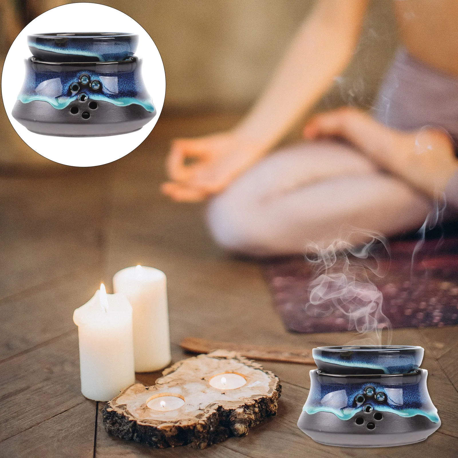 1Pcs Japanese Style Ceramic Tea Warmer Retro Teapot Heater with Holder for Softening Water Enhancing Tea Decor