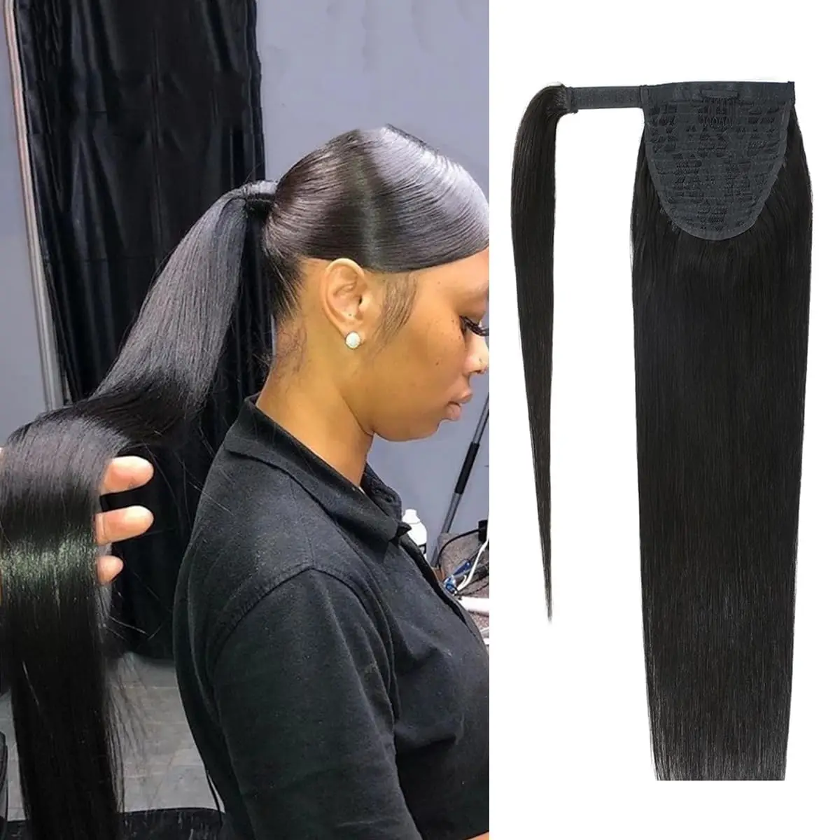 Ponytail Extension 100% Real Human Hair Ponytail Silky Straight Wrap Around Jet Black Clip in Ponytail Hair Extension For Woman