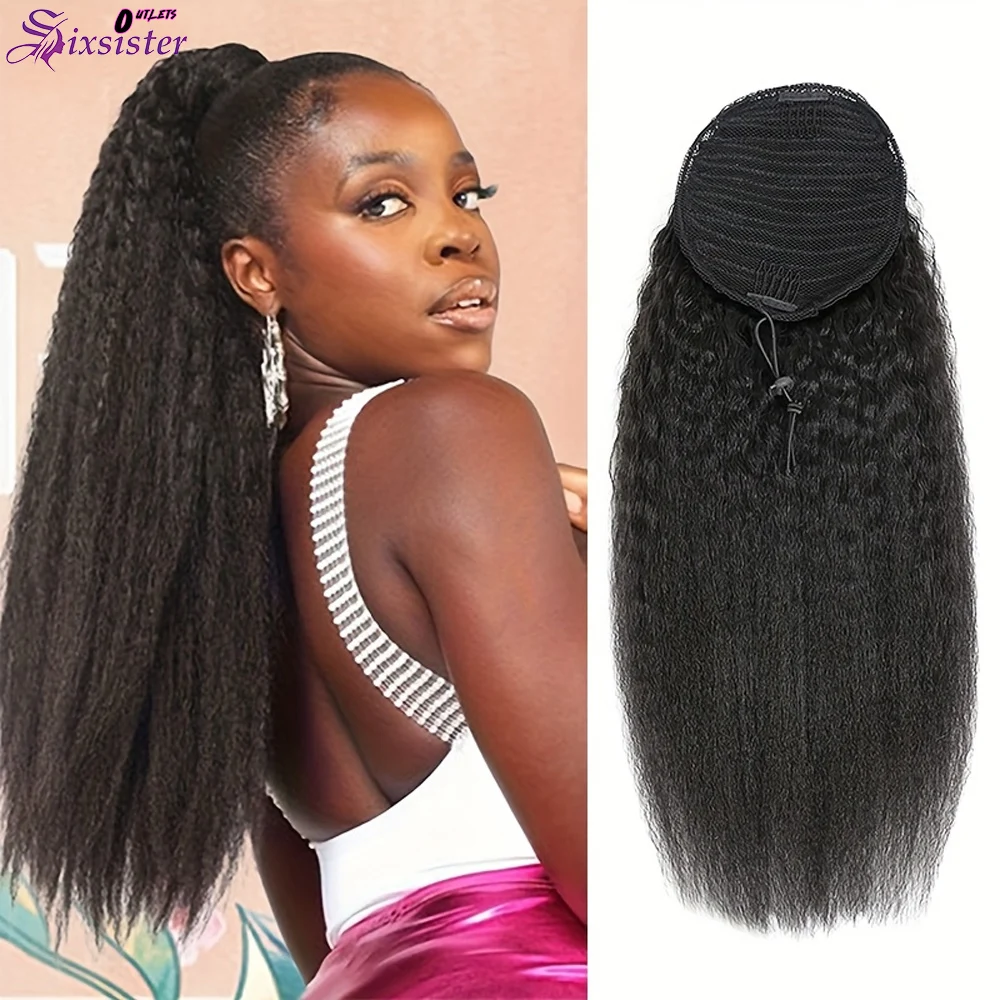 High Quality Human Hair Kinky Wave Ponytail Drawstring Elastic Mesh Soft Texture Durability Natural Look Versatile Styling