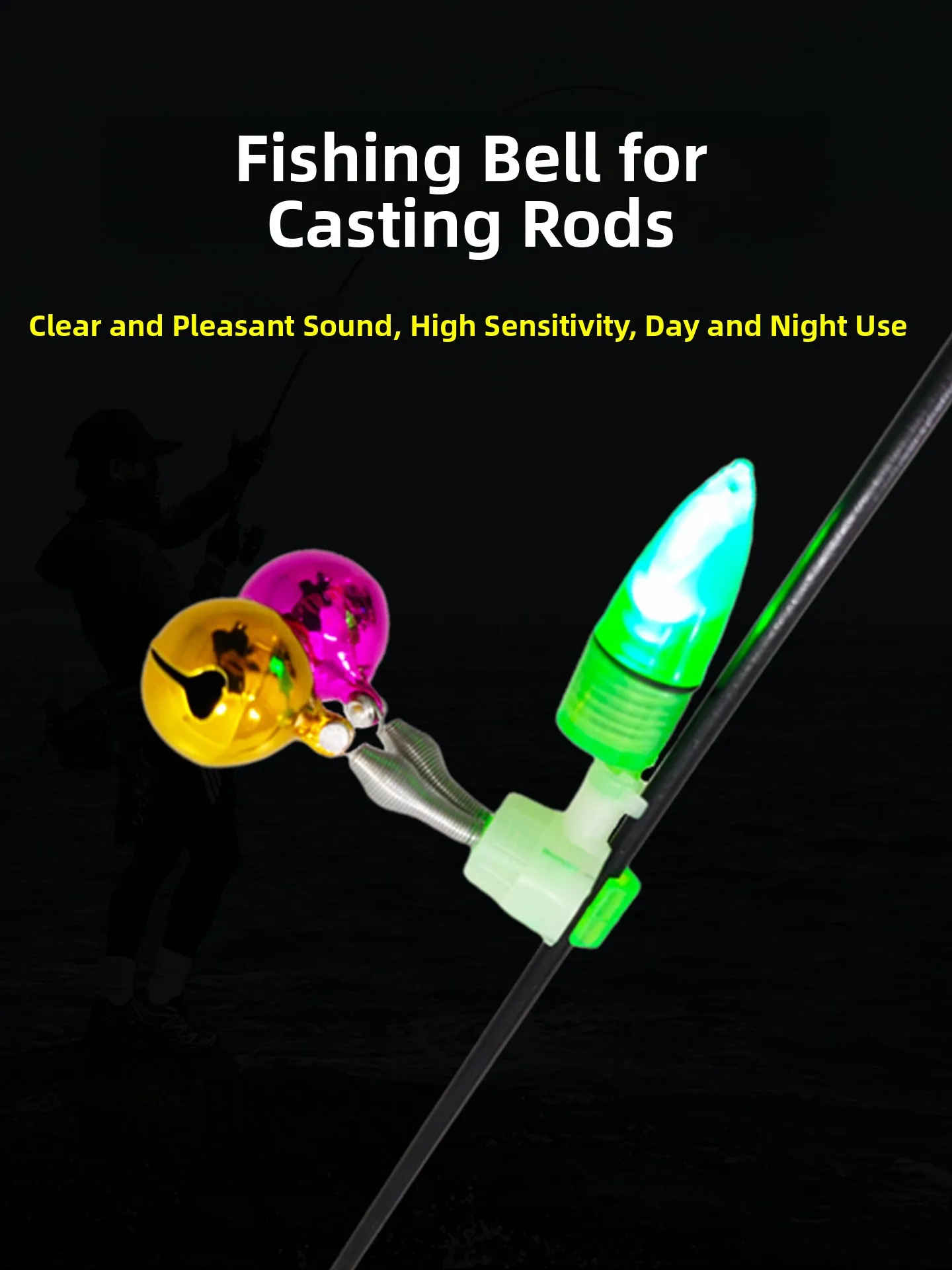 New pe Fiing Bell Alarm Pure Copper Sea Rod Electronic Night Light Casting Rod Fiing Bell Anti-Towing Outdoor Cam...
