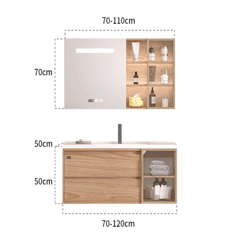 American Rock Slab Vanity Integrated Bathroom Cabinet Combination Cream Wind Oak Wash Hand Washbasin Bathroom