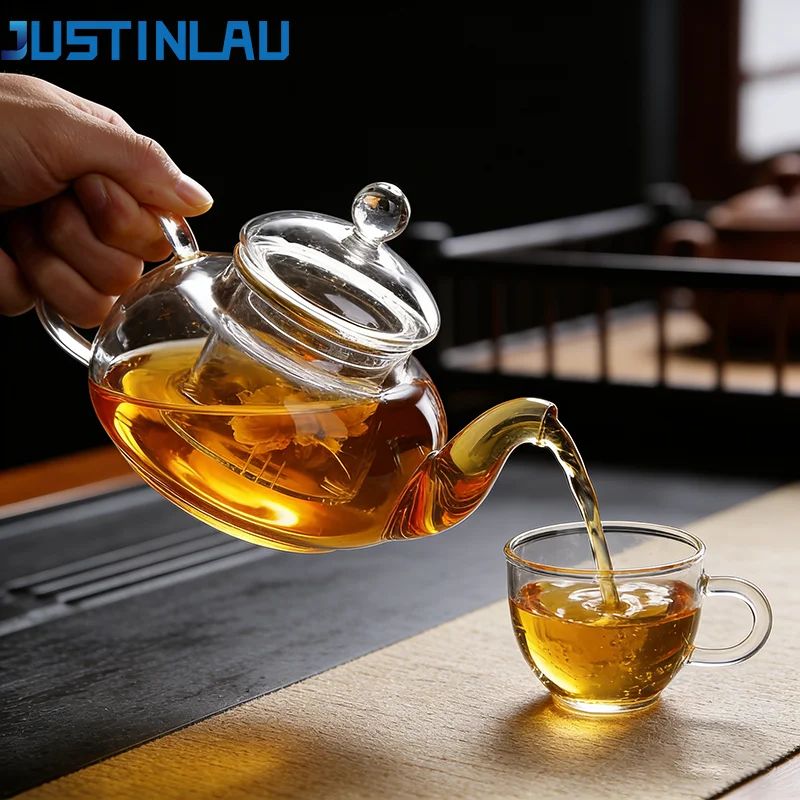 JUSTINLAU 400ml/1000ml High Borosilicate Glass Tea Pot Filterable Heat-resistant Glass Flower Tea Pot Heatable Glass Tea Set