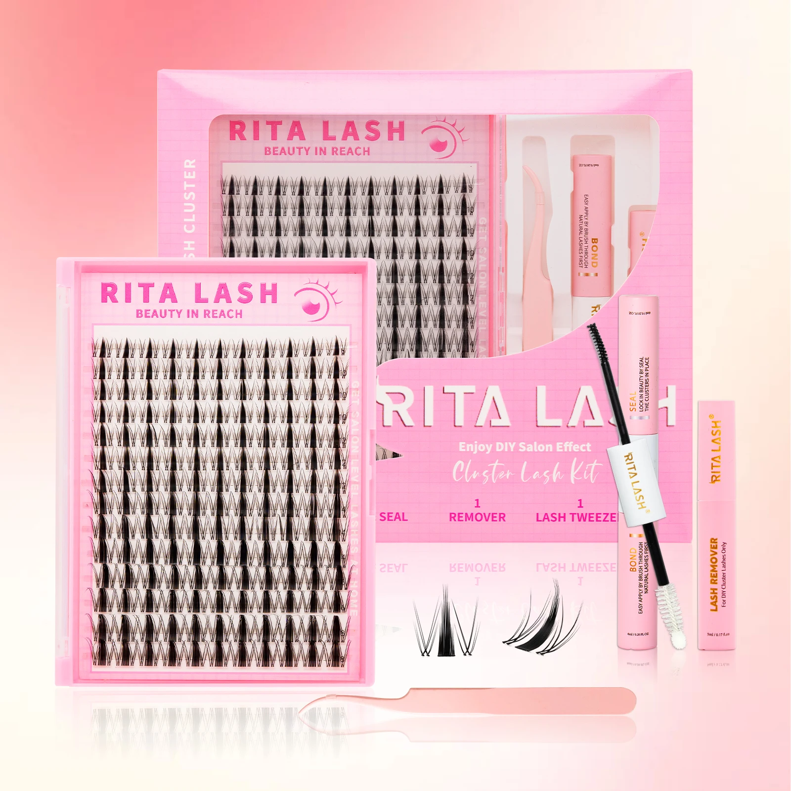 RITALASH 154pcs D Curl Cluster Lash Kit D Curl DIY Eyelash Extensions Long Individual Lashes Mixed Tray Lash Clusters Extensions