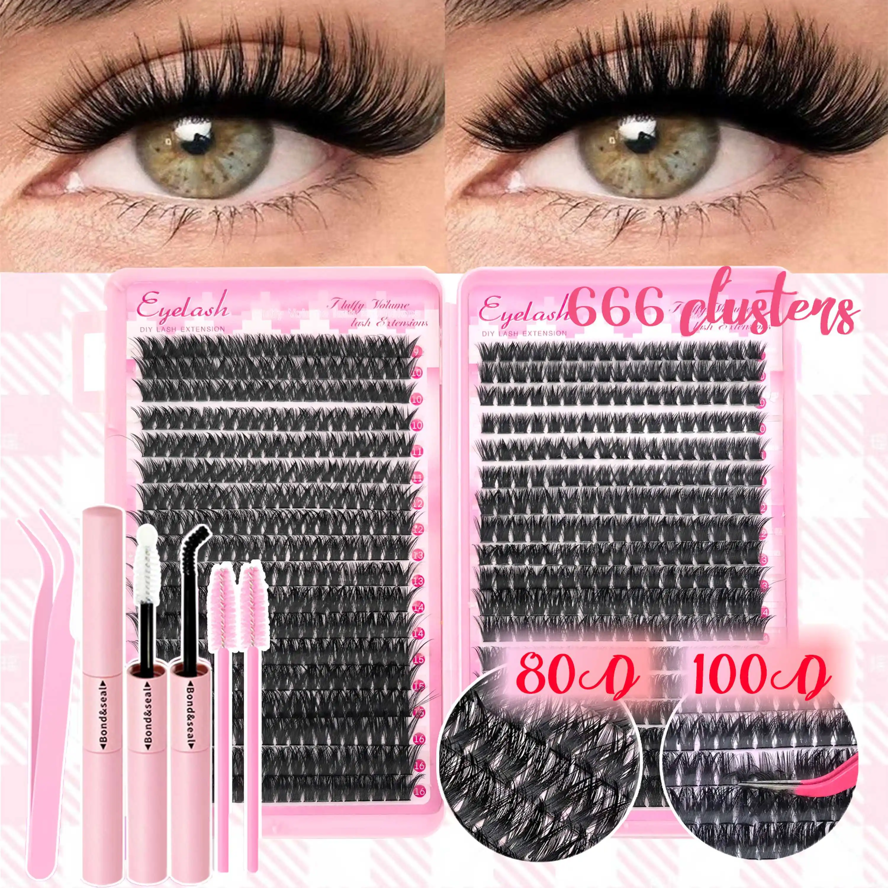 Voluminous Fluffy Cluster Lashes Kit – 200/290/666 Cluster 80D100D Show-Stopping Party Looks! Curated Length Mix