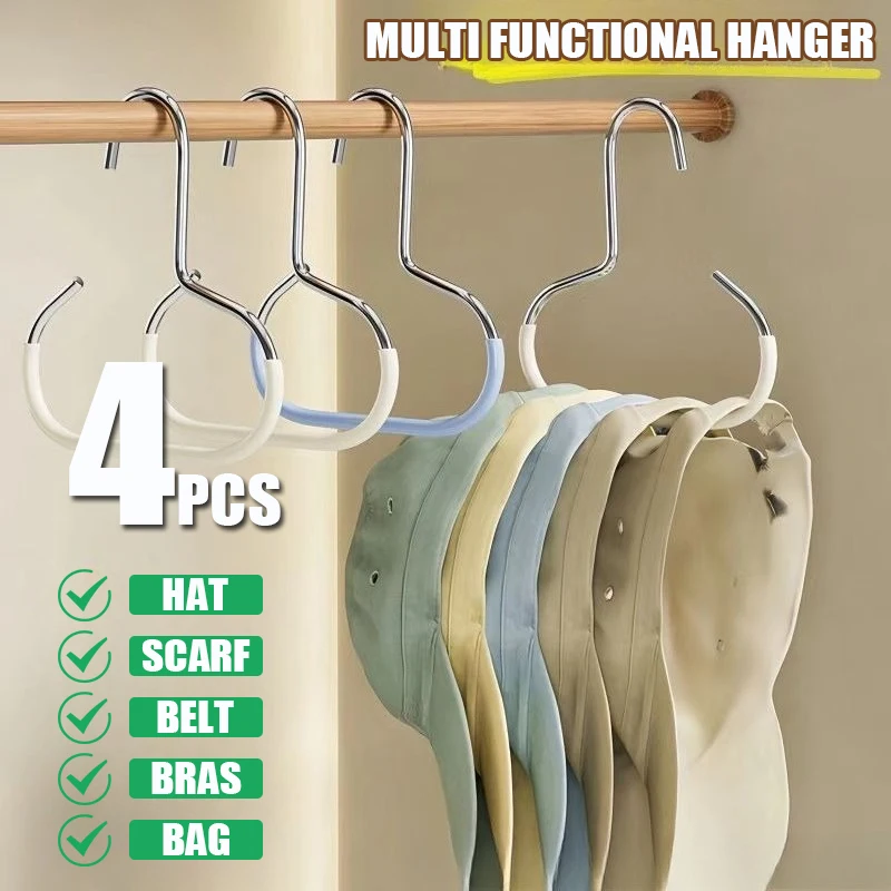 1-4Pcs Circle Ring Hat Hanger Non-marking Non-slip Hat Storage Hook Closet Bedroom Saving Space Scarf Towel Tie Hanging Rack