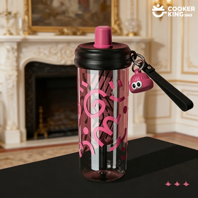 COOKER KING 650ML Tritan+PP Material Graffiti Style Straw Cup Large Capacity Portable Cupwater Bottle for Kids Vacuum Flask