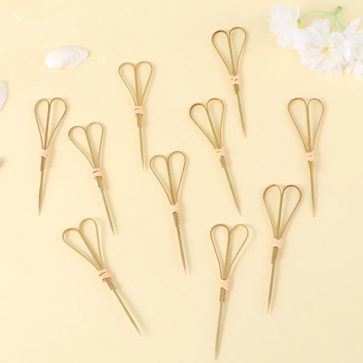 50Pcs Cocktail Picks Bamboo Scissors Handle Creative Fruit Sticks Appetizer Decor Party Bar Ktv Home Entertaining Supplies